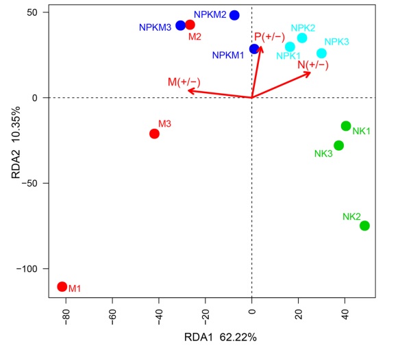 图2 不同处理AMF菌落的RDA分析