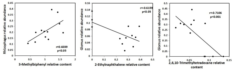 图4 乙酸乙酯提取溶解有机物与AMF群落属的皮尔森相关性分析