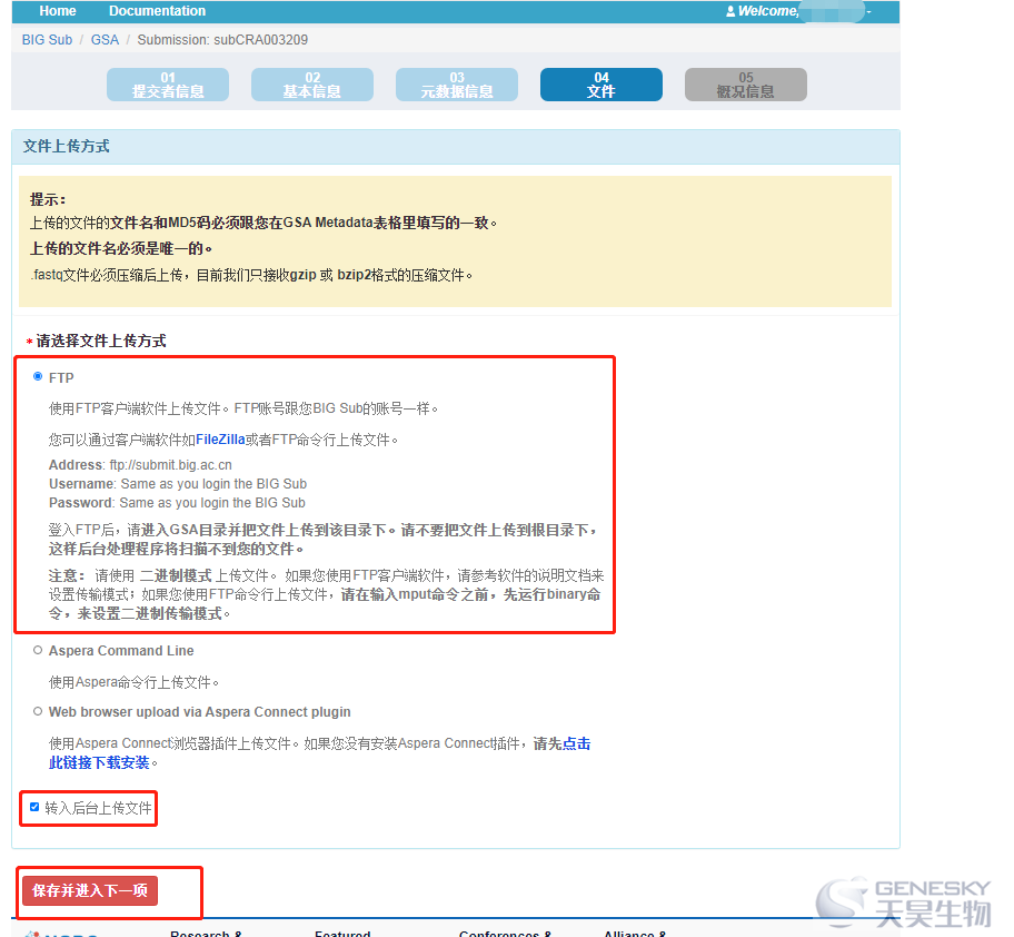多样性数据提交,以往都是通过NCBI的SRA进行提交,网上也能找到不少推文介绍如何提交。但SRA提交等待周期较长,遇到提交问题联系工作人员的话,需要等第二天才能收到邮件回复,反复沟通的话,时间耗不起。中国科学院北京基因组研究所(国家生物信息中心)开发的中国核酸数据库GSA(组学原始数据归档库),是最近数据提交的新选择,提交最快当天即可获取登录号,且提交过程中的任何问题都可以通过网站(https://bigd.big.ac.cn/gsa/)联系工作人员进行一对一指导,群工作时间是工作日9:00-17:00。建议使用Chrome浏览器(别问为什么,遇坑后工作人员给的解决方案)。